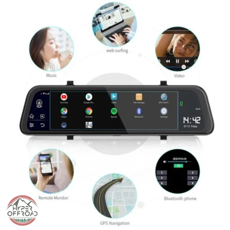 این آینه دوربین دار سیم کارت خور مجهز به چیپست پردازشگر قوی و حافظه رم داخلی 2 گیگابایتی و حافظه رام 32 گیگابایتی در کنار آخرین ورژن سیستم عامل اندروید میباشد در نتیجه میتوانید هر اپلیکیشنی که تمایل دارید روی آن نصب کنید. فیلم ببینید و.... حال آنکه با توجه به مجهز بودن به آنتن جی پی اس میتوانید انواع برنامه های مسیردهی و ترابری را نصب کنید. ضمن اینکه شما مجهز به دوربین ثبت وقایع بسیار عالی و دید در شب هم در جلوی خودرو و هم در پشت خودرو خواهید بود. از طرفی با توجه به سیم کارت خور بودن این آینه و قابلیت هات اسپات ، خودرو شما توسط این آینه مجهز به مودم داخلی میباشد ضمن اینکه میتوانید سایر لوازم مالتی مدیا خودرو خود را به اینترنت آینه متصل کنید ، خودتان یا سرنشینان خودرو هم میتوانید با جست و جو وای فای به اینترنت این آینه متصل شوید! گویی در منزل هستید و مودم همیشه فعال دارید!