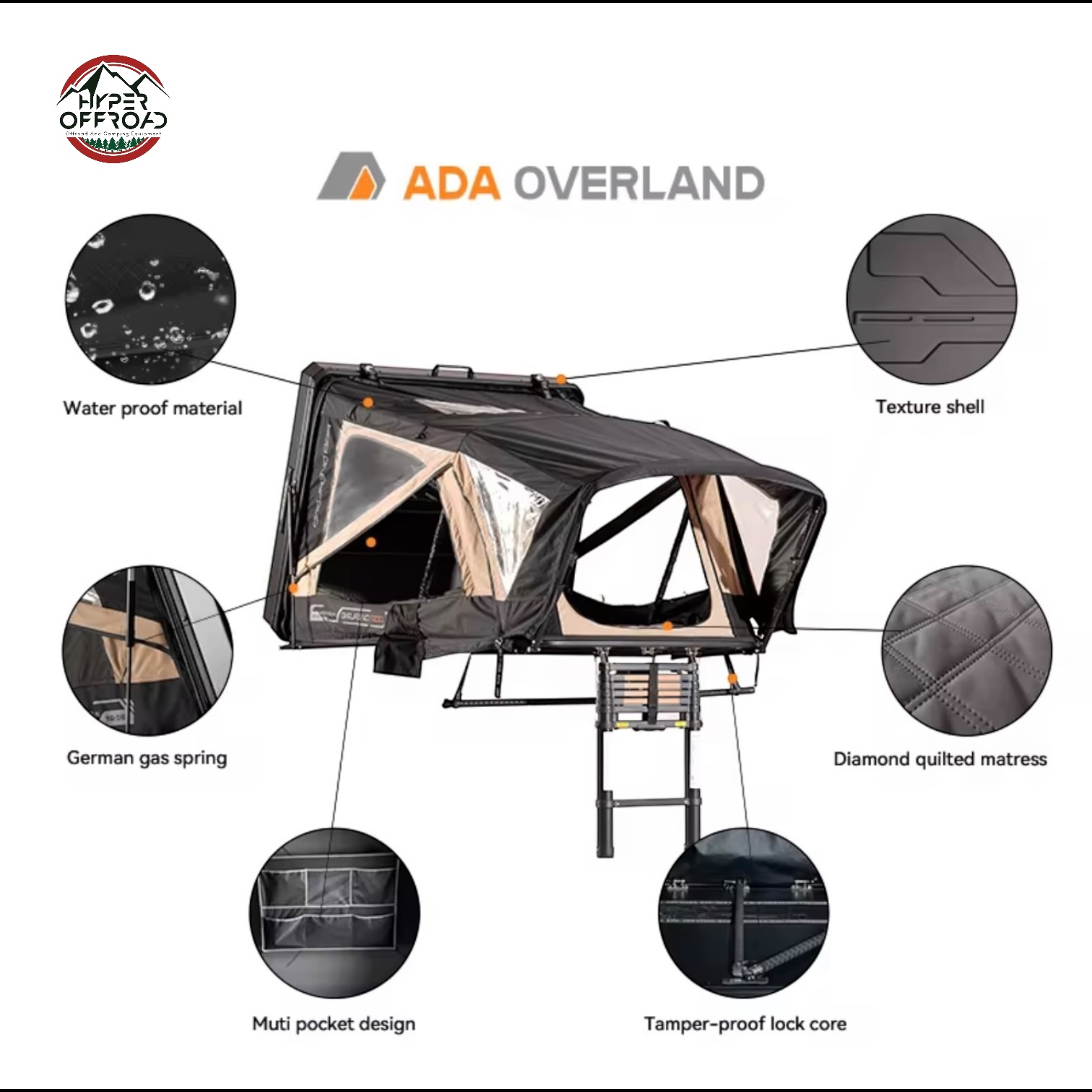 این چادر سقفی هاردکیس خودرویی (rooftop tent) از برند معتبر و جهانی ADA OVERLAND مدل ADA-PR135 مخصوص 2-3 نفر طراحی شده است و برای کمپینگ، سفرهای طبیعتگردی و ماجراجویی با خودرو بسیار مناسب است. با بدنه سخت آلومینیومی، بازشونده خودکار (Pop-Up)، و پوشش ضدآب قوی، ترکیبی از راحتی، ایمنی و کارایی را عرضه میکند.