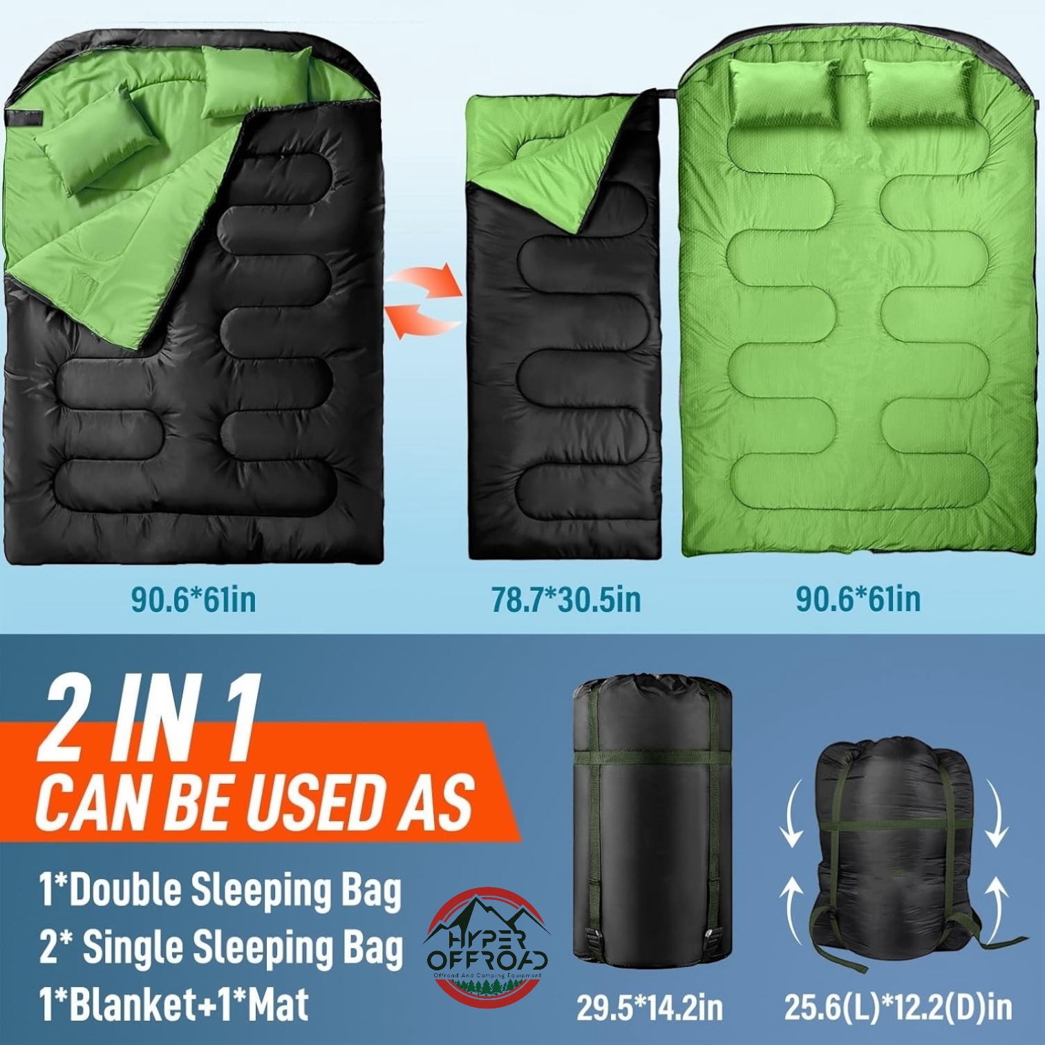 کیسه خواب دو نفره از برند MOP المنتدار و ضد آب، انتخاب ممتاز برای سفرهای کمپینگ، طبیعتگردی و آفرود است. این محصول با طراحی ویژه برای دو نفر، دارای پوشش بیرونی مقاوم در برابر نفوذ آب و باد بوده و با پرکردگی از الیاف Hollow Fiber با تراکم ۲۵۰ گرم بر متر مربع، عایقی بسیار قدرتمند ایجاد میکند که حفظ گرما را به سطحی عالی ارتقاء میدهد.
