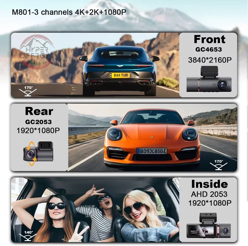 •سه لنز مجزا: پوشش کامل جاده، داخل کابین و پشت خودرو برای نظارت همهجانبه.