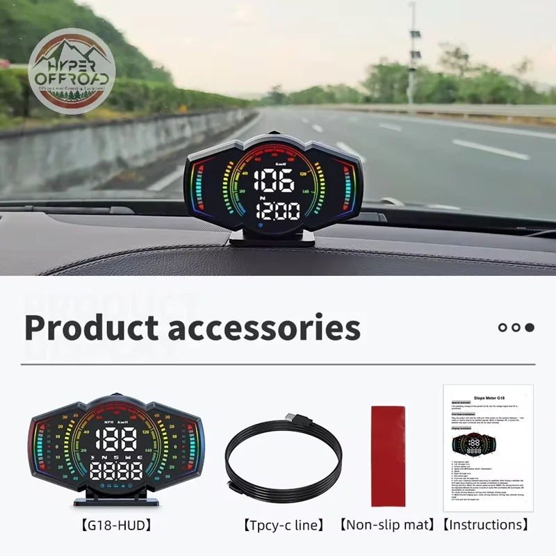 نمایشگر HUD مدل G18 یک ابزار هوشمند نصب‑شدنی روی داشبورد خودرو است که با چیپ GPS+Beidou با نرخ تازهسازی ۱۰ هرتز سرعت دقیق خودرو را نمایش میدهد.